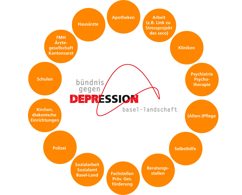Schlüsselpersonen des öffentlichen Lebens sollen über das Thema Depressionen informiert und nach Bedarf geschult werden, damit sie in ihrem Umfeld auf die Depression aufmerksam machen können. Es sind Apotheker-/innen, Pflegende, Lehrpersonen, Pfarrer-/innen, Angestellte des Polizeiwesens, Medienschaffende etc..